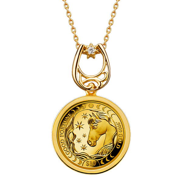 しあわせの「午年」金貨 純金コインの宝飾ペンダント
