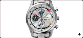 あの頃の記憶と胸の高鳴りがよみがえる『 秘密戦隊ゴレンジャー』50周年記念ウオッチ。ゴレンジャーマシーンを想起させる白銀の文字盤、そのインデックスには金色に輝く額の数字と鮮やかに走る5色のライン。夢中で憧れたかけがえのない時間を、いつもその腕に。 スーパー戦隊シリーズ、その伝説の始まりを刻む『秘密戦隊ゴレンジャー』のクロノグラフモデル スーパー戦隊シリーズの原点たる決めポーズに心躍る特製ボックスに収めてお届けいたします
